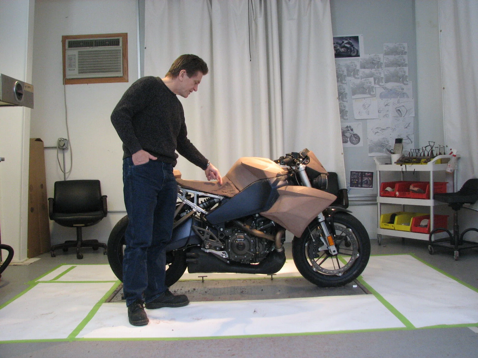 Early in my career, I was fortunate to work with some great designers and craftsman at Buell. Below is the clay bike of a next generation street fighter that never was… Due to engine issues with the new motor and undoubtedly politics, this was mothballed before it every got fully prototyped.